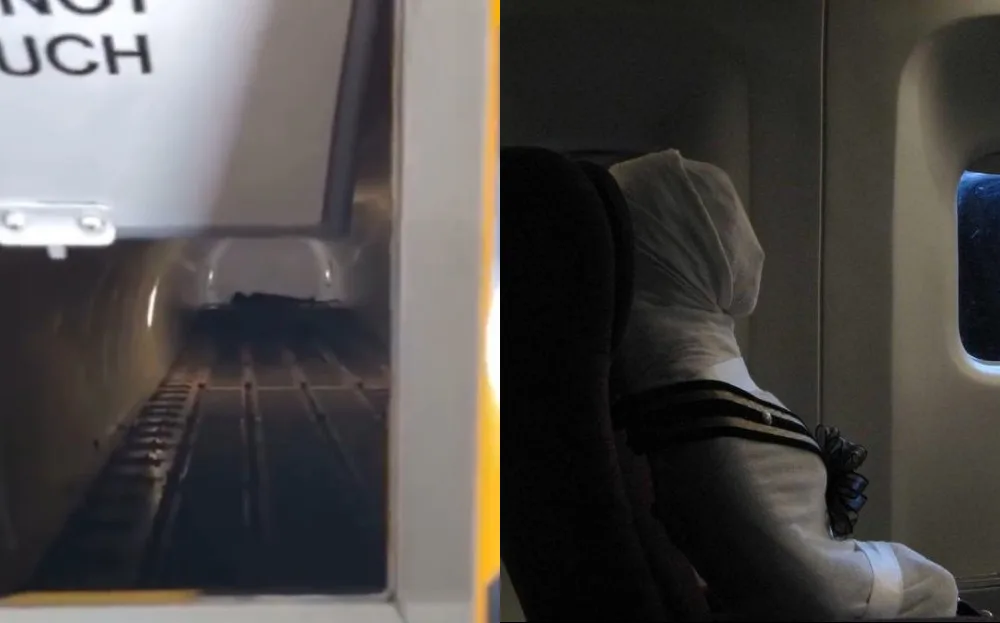 The viral video in question was apparently recorded from behind a door of a cargo hold at the belly of the plane. Along with the video, the caption reads: “Imagine you are 30,000 feet in the air and the coffin is all nicely wrapped up. But the ‘thing’ is lying outside of its coffin. It’s not funny ya.”