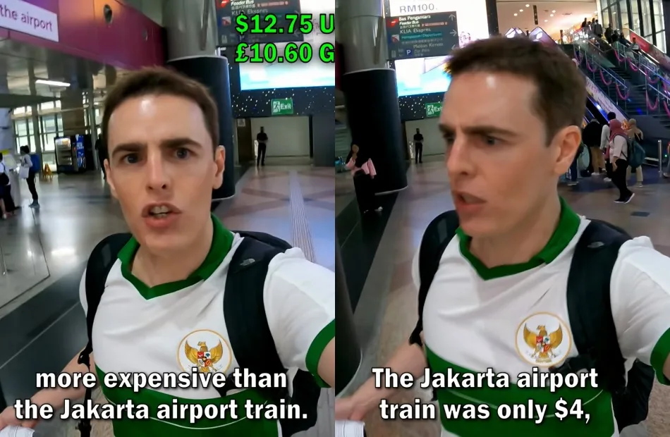 Scottish YouTuber Dale Philip recently posted a video on his official Facebook page where he documented his experience using the KLIA Transit train from KL Sentral. The video started with the traveller comparing the ticket price for the rail service to that of Jakarta’s saying that it’s more expensive compared to the Indonesian airport trains.
