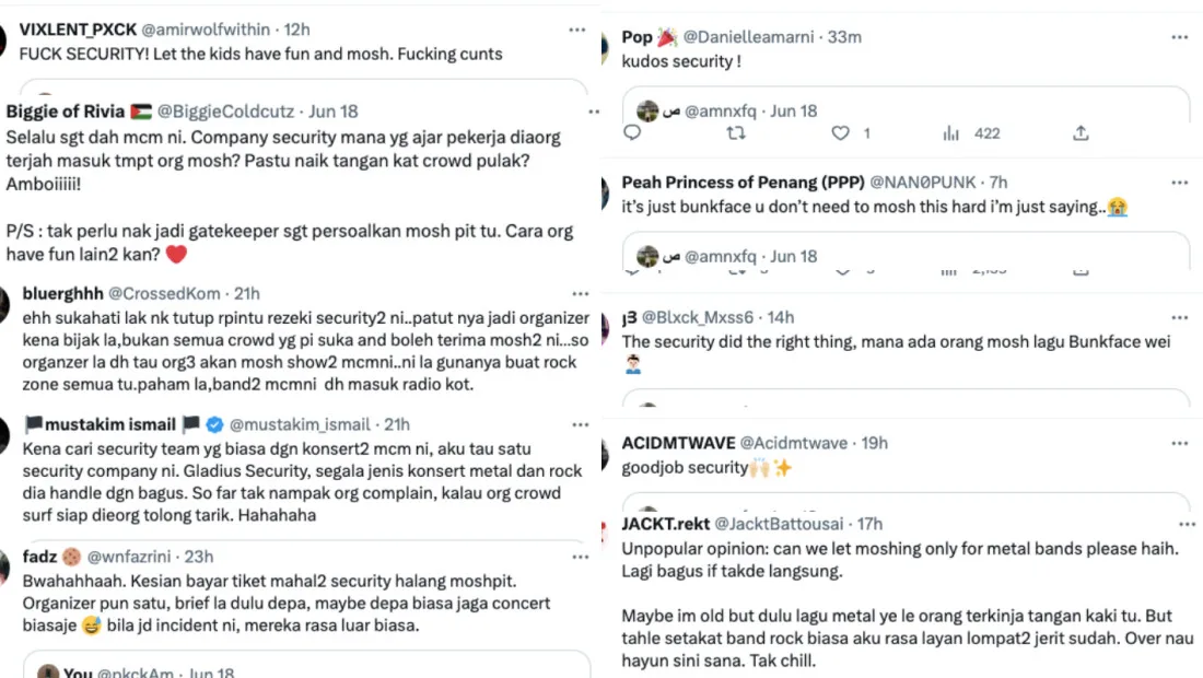 first time aku gi masuk mosh pit kena belasah dengan security hanat betul. @bunkfaceband @hujanband @KugiranMasdo #JiwaKacau pic.twitter.com/uyGL5DPcQD— ص🇵🇸🇲🇾 (@amnxfq) June 17, 2023