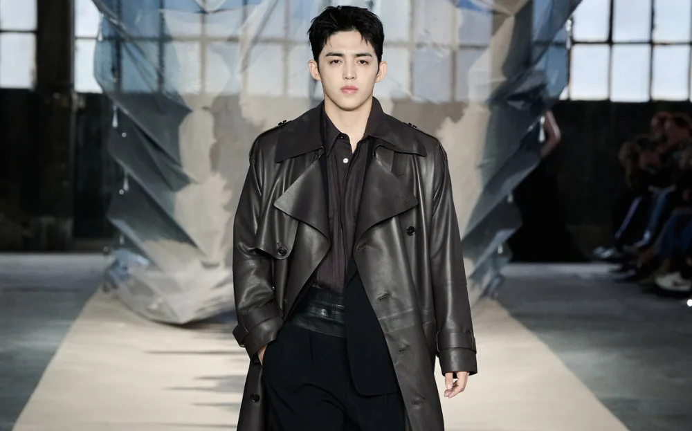 Without notice, S.COUPS appeared on the runway, closing out the show. The 30-year-old rocked the final look from the womenswear collection, wearing a long, brown leather trench coat over a matching sheer blouse, black crepe pants, and a statement belt. This show marks the rapper’s runway debut. He’s also the second SEVENTEEN member to walk a fashion show, after Mingyu (민규).