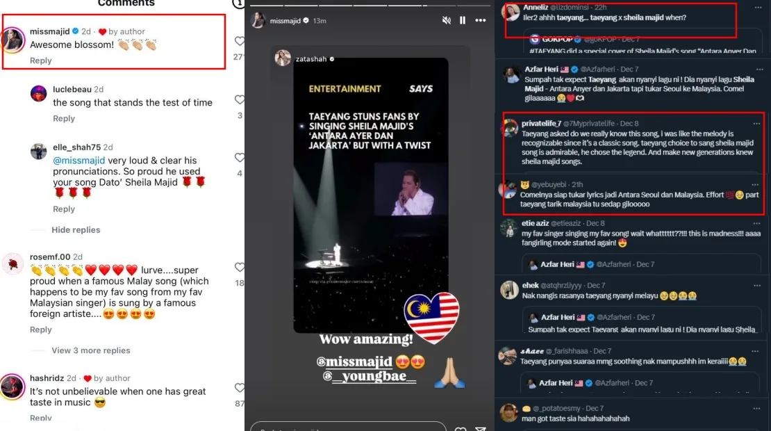 The performance attracted the attention of many Malaysian netizens, with some expressing gratitude towards the “Loser” hitmaker for singing such an iconic local song during his show in Kuala Lumpur. With a tribute like that, it shouldn’t be too surprising that Sheila Majid herself caught wind of the performance and shared her thoughts as well. The songstress took to the viral Instagram post’s comment section to say, “Awesome Blossom!” to express her excitement over the K-pop idol singing her song.