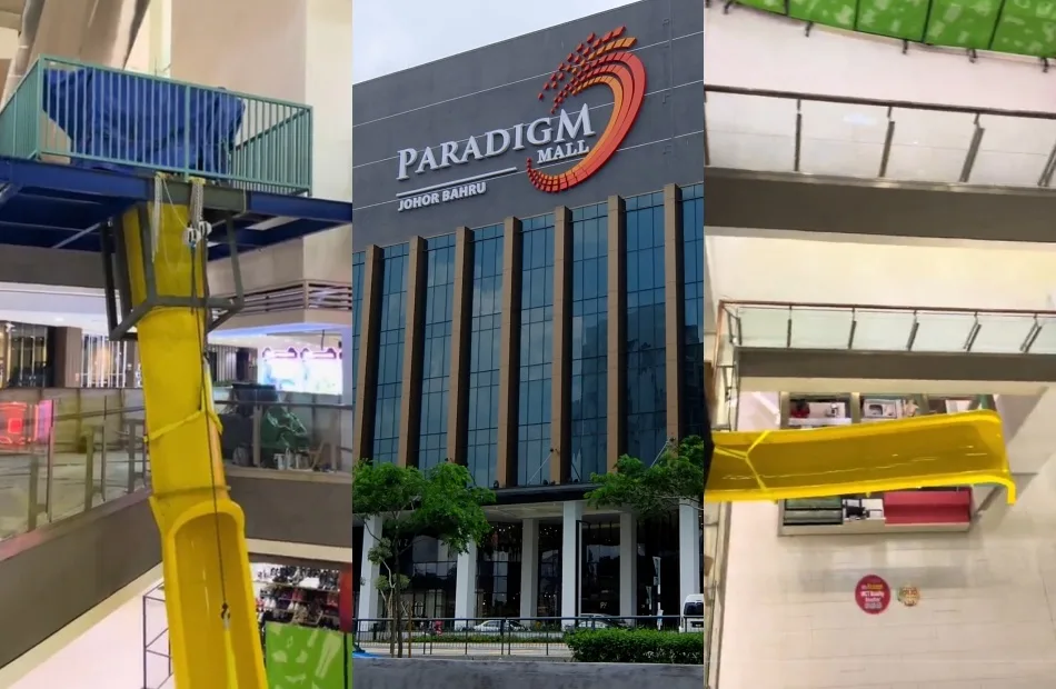 Over the weekend, a TikTok user who goes by @/happyboy16_ or Asry posted a video on his channel of the latest attraction he saw at Paradigm Mall Johor Bahru. The video showcased a large yellow slide being installed from what appears to be the 4th floor.