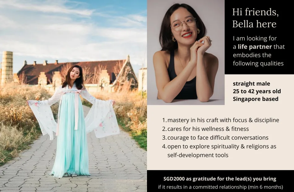 According to The Straits Times, Bella Dai is offering a RM7000 (SG2000) reward and sharing what she looks for in a partner on her Instagram since February. “Hi friends, Bella here. I am looking for a life partner who embodies the following qualities,” her post reads before she lists the criteria. The man of her dreams must be between 25 and 42 years old and based in Singapore. Apart from his age and location, the partner must possess the following qualities: