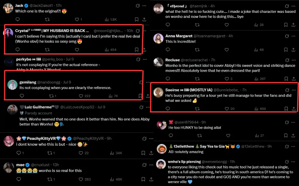Netizens were in a frenzy over the cover, with many labelling WONHO as the real reference for Abby Saja. Twitter user @/moonlightjkooki comments, “I can’t believe I’m saying this, but I prefer the real live deal. He looks so sexy omg”. Other netizens also comment on how WONHO never skips out on giving fans what they want, despite being busy preparing for his tour. Twitter user @/Bunniebebe_ comments, “He’s busy preparing for a tour, yet he still manages to hear the fans and did what we asked”.