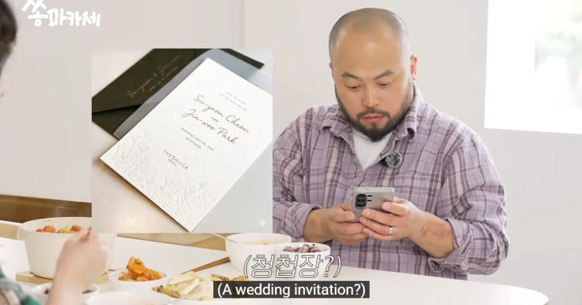 David would continue to question the legitimacy of the invitation, even asking if he should call the hotel to check. However, when the chef pointed out the absence of a map, typically included in wedding invitations, Song Jihyo admitted that the whole thing was an April Fool’s Day prank. The video filming took place on 1st April, so the actress planned the prank to fool her friend.