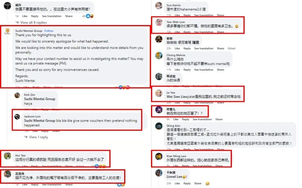 In the video, the customer was lamenting about the employee’s disgusting actions, pointing out that the employee was standing right in front of food meant for the customers. The video garnered attention from netizens who shared their shock at the scene. Many complained about the restaurant employee’s lack of concern for food safety and hygiene. However, some Sushi Mentai customers noted that the particular outlet is notorious for being unhygienic and having terrible customer service.
