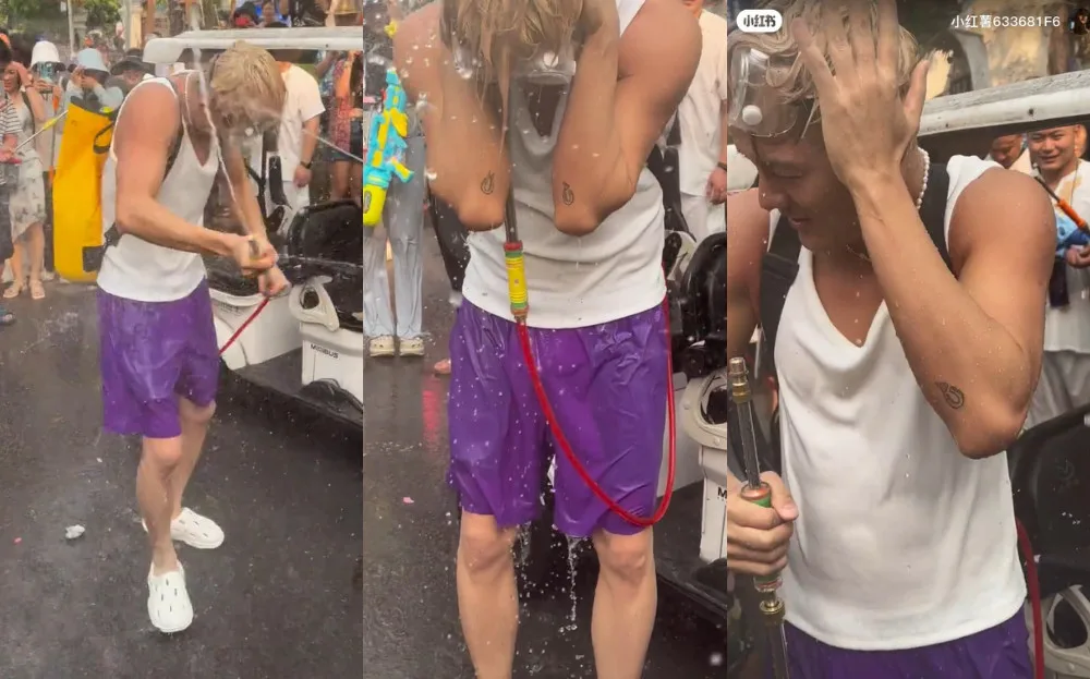 The 45-year-old recently attended the Water-Sprinkling Festival (泼水节) in the Xishuangbanna Dai Autonomous Prefecture in Yunnan province, China. The festival is similar to the Songkran Festival in Thailand, where participants take part in water-splashing activities like water fights and playing with water guns. Most people at the festival would dress comfortably in bathing suits and t-shirts as they would very likely get drenched by their fellow festival attendees.