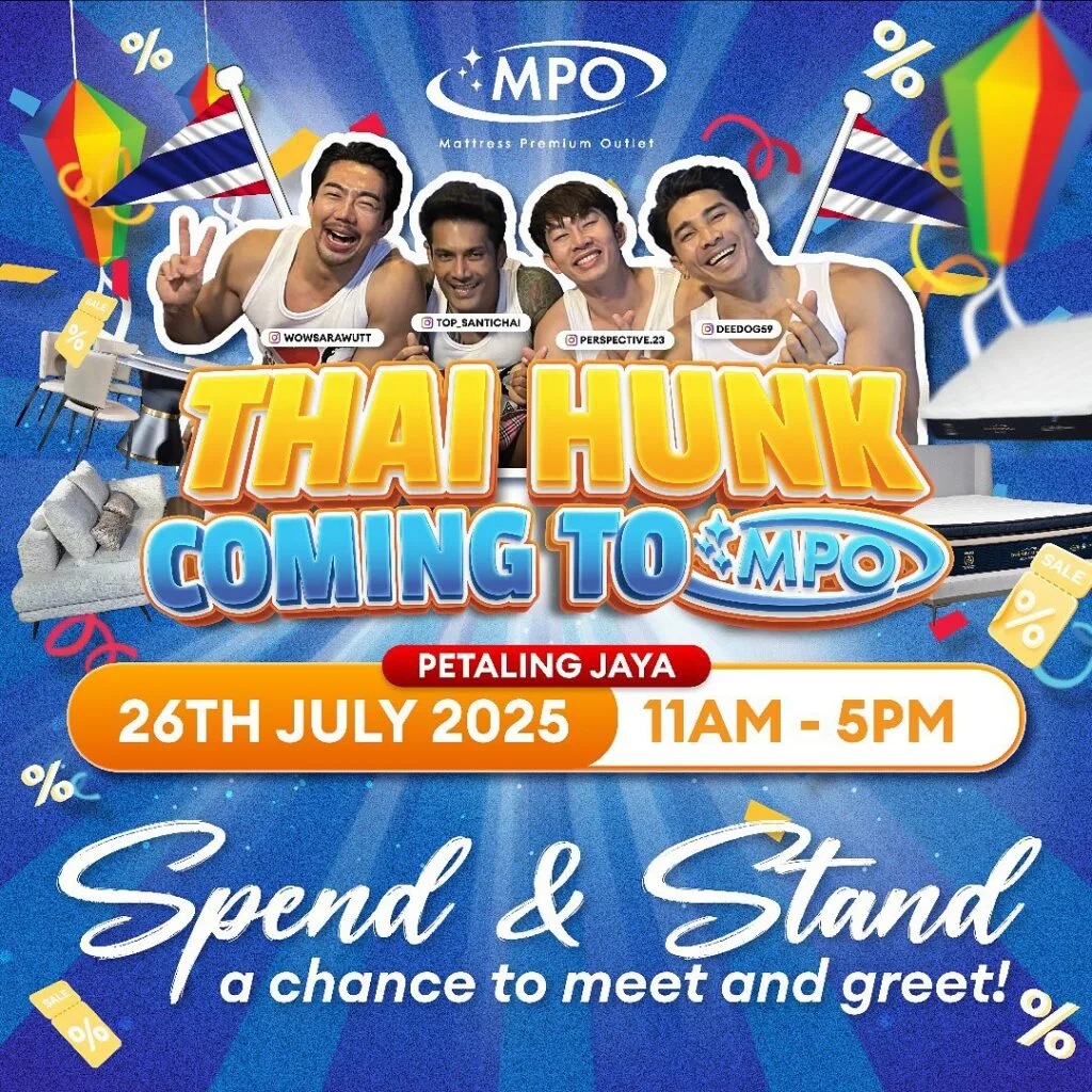 Yesterday, local social media personality Caprice shared a video on his Instagram account, revealing that the four members of Thai Hot Guys would be making an appearance at Mattress Premium Outlet (MPO) in Petaling Jaya this weekend. The event, titled “Thai Hunk Coming To MPO”, is scheduled for 26th July 2025 (Saturday) and will include meet-and-greets with the viral influencers.