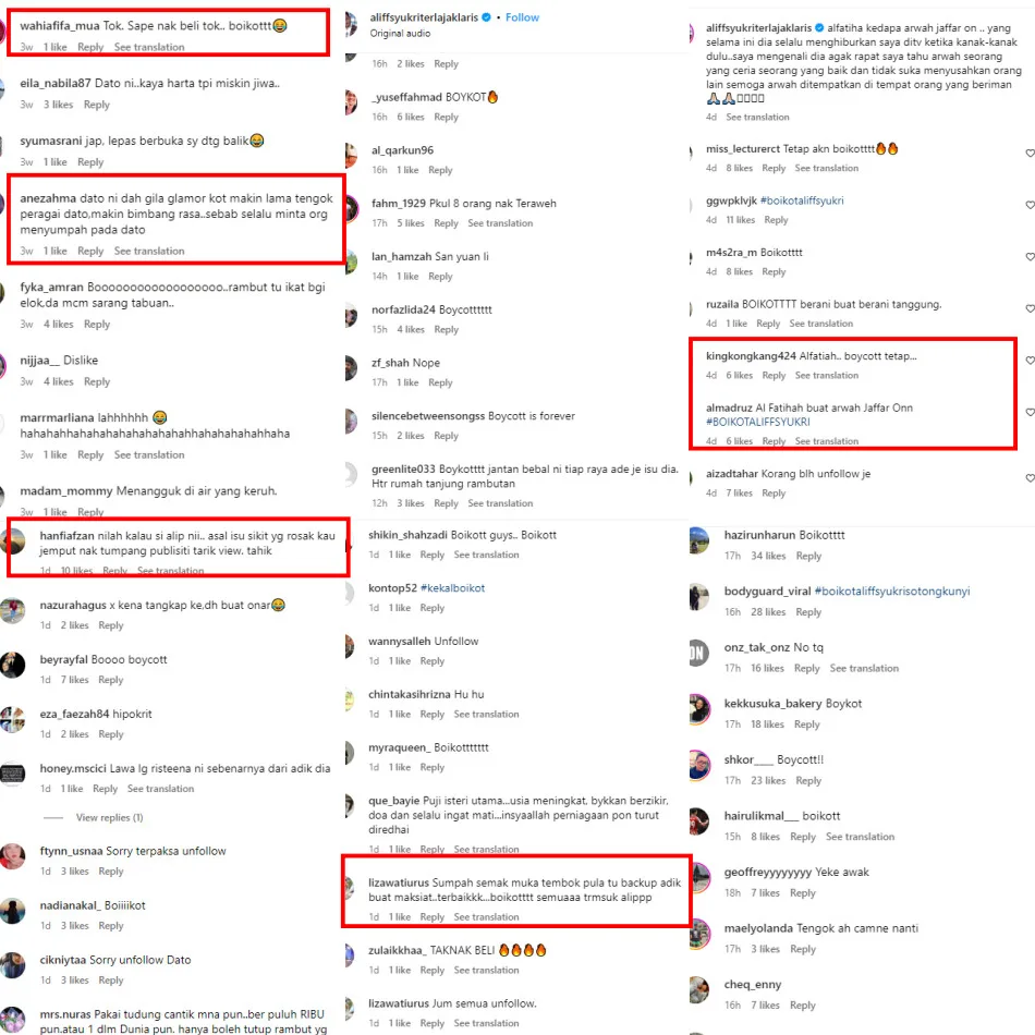 Recently, UMNO Youth Leader Dr Akmal Salleh urged the public to boycott Aliff Syukri and his brand after he posted the Raya prank video which angered many. Since then, we’ve noticed that almost every post that the 37-year-old uploaded on Instagram and TikTok has been flooded with comments calling for a boycott.