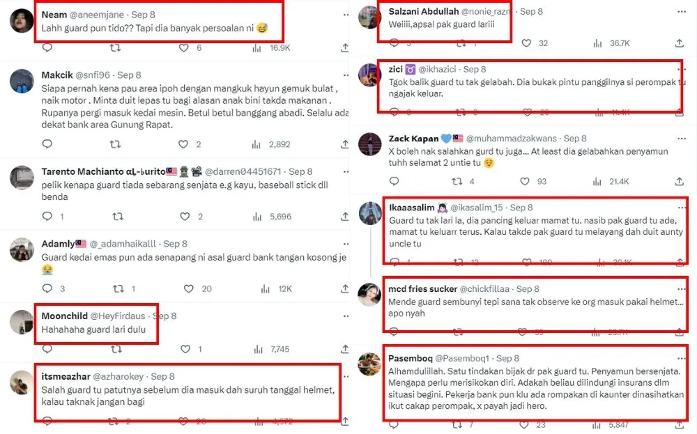 After the video went viral, many netizens criticised the security guard’s supposed response to the robbery and mocked him for running away. However, it seemed that the guard had done the right thing because some netizens pointed out that he had distracted the robber to stop him from causing any more harm to the victims.