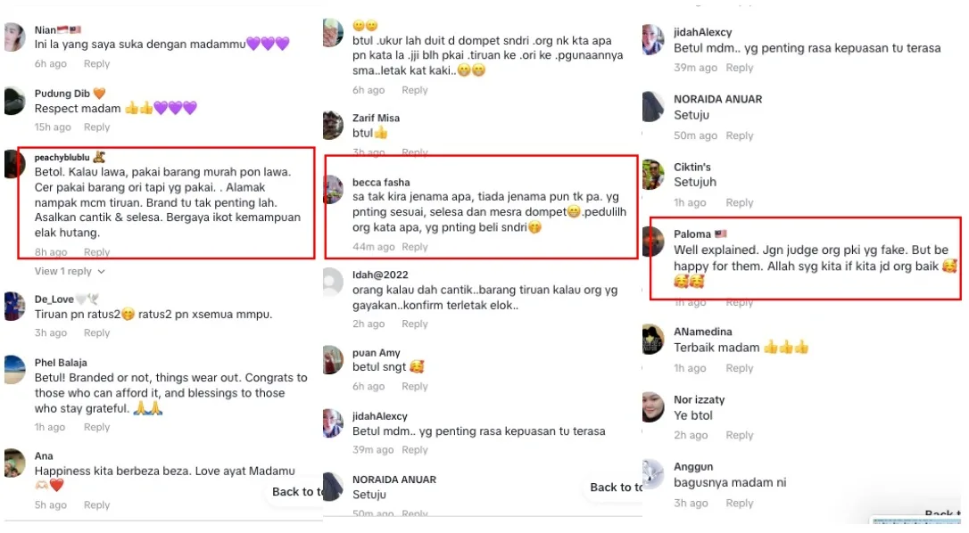 That moment during the broadcast was reposted on TikTok, with netizens largely agreeing with her views. Some commented that the brand, whether authentic or not, shouldn’t matter as long as the products serve their purpose.
