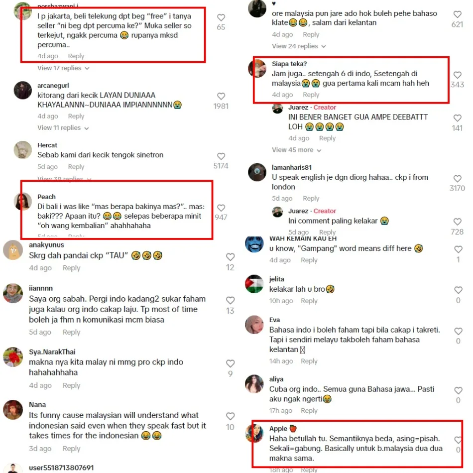 The TikTok post became Juarez’s most-viewed video on his channel with netizens from both Malaysia and Indonesia sharing similar experiences of “language shock” when they travel to each other’s countries. Have you faced a similar struggle before?