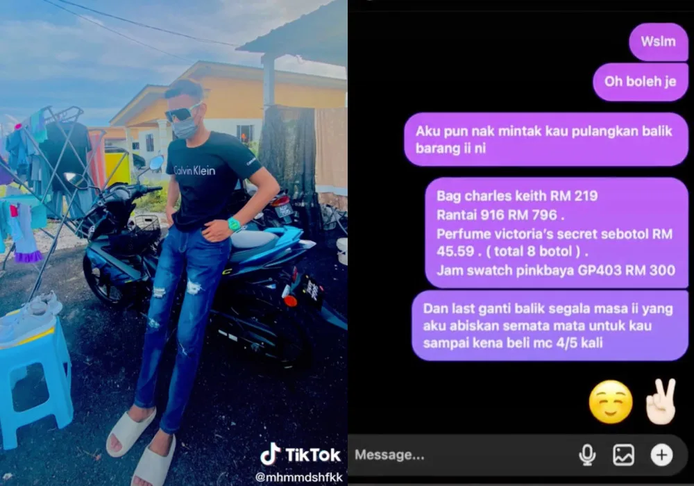 While the woman’s demands drew attention, the TikTok account owner’s witty response elicited criticism towards the woman and sympathy for the man, accusing the woman of playing the victim. He requested a Charles & Keith handbag (RM219), a gold necklace (RM796), eight bottles of Victoria’s Secret perfume (RM45.59 each), a Swatch watch (RM300) to be returned, and mockingly, the time he had spent for the woman until he had to purchase five medical certificates.