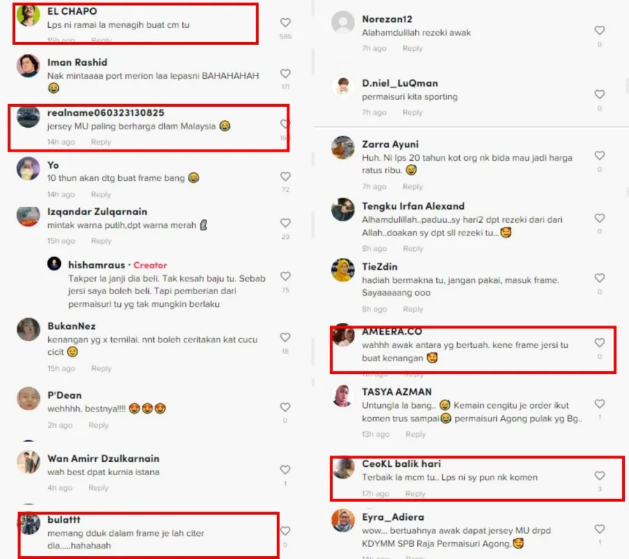 Content creator @hishamraus jokingly commented, asking the royals to buy him a Manchester United jersey while they were in London. Much to his and everyone’s surprise, the Queen consort, Tunku Azizah Iskandar replied to his comment asking for his shirt size but did not promise that they’ll have time to actually buy it. Fast forward two months later, the TikToker finally posted an unboxing video.