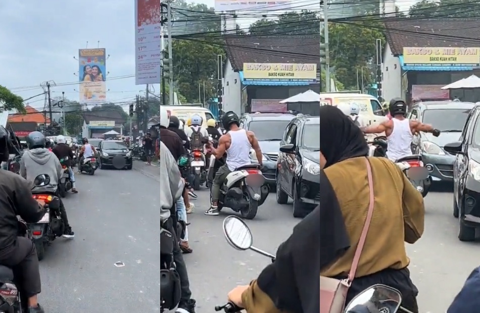 Earlier this week, a video was posted on Twitter by user @ngurahsaka that showed a strange sighting during a traffic jam in Indonesia. Road users and passersby were surprised to see what appeared to be a foreign man lifting dumbbells on his motorcycle in the middle of the road.