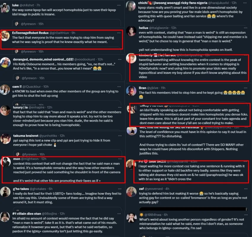 From the screenshots above, it is understood that the topic of conversation was BL (Boys Love) romantic comedy content. The idol was explaining that shipping two male characters or the actors is fine as long as it doesn’t cross the line. However, some argued that even with context, his choices of words were extremely poor.