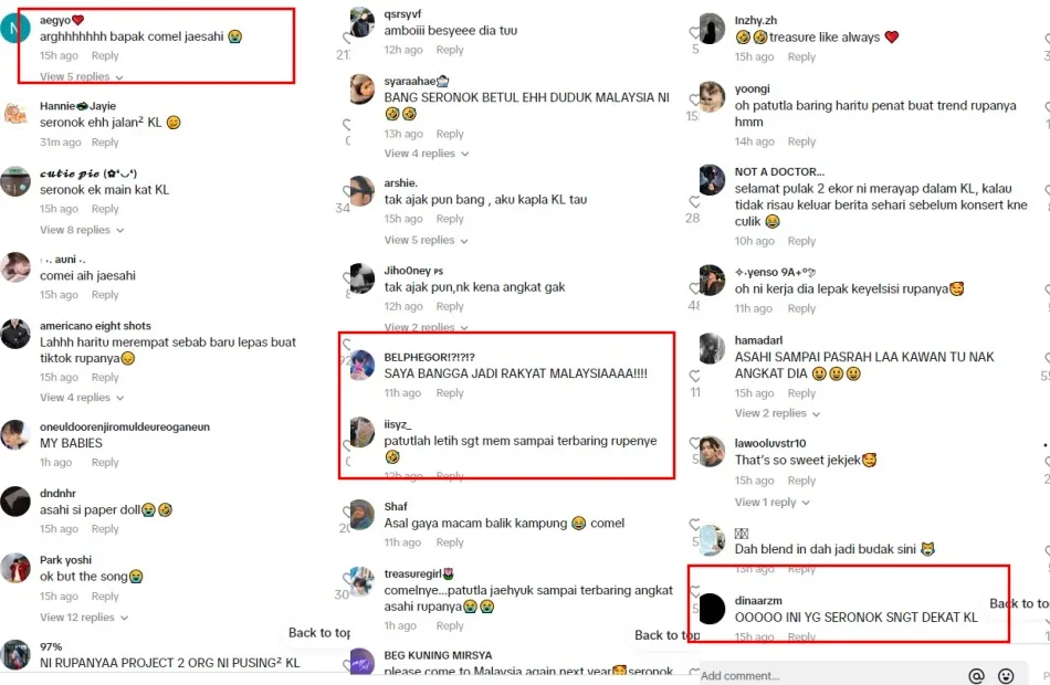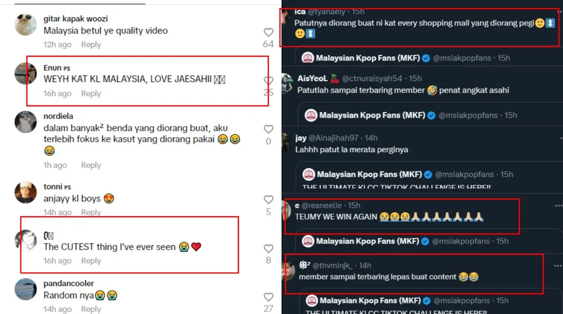 Many were excited to see Malaysia being represented in TREASURE’s TikTok video while others found the members doing the challenge adorable. Some were satisfied to finally receive an answer as to why Asahi and Jaehyuk appeared tired at KLCC Park last week. A few were hoping that TREASURE would do this at every shopping centre they visited in KL.