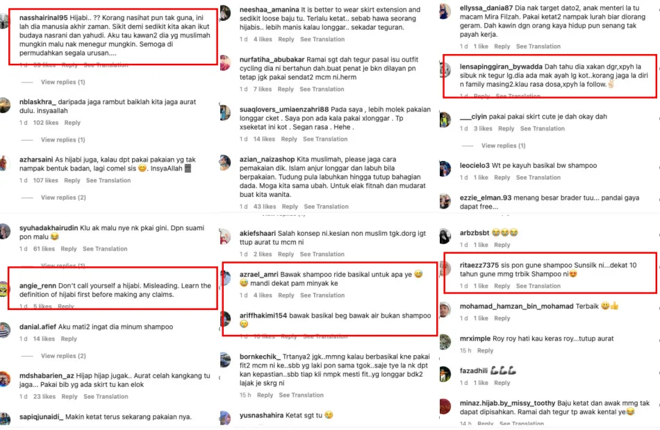 Netizens called out the “Wanita Hari Ini” host for dressing inappropriately in the video saying that clothes that show off the shape of a woman’s body are prohibited in Islam. There were also a few who defended Hawa saying that netizens are wasting their time as she may never see their comments. Others just find the video humorous cause the news anchor is seen casually carrying around shampoo in her cycling bag.