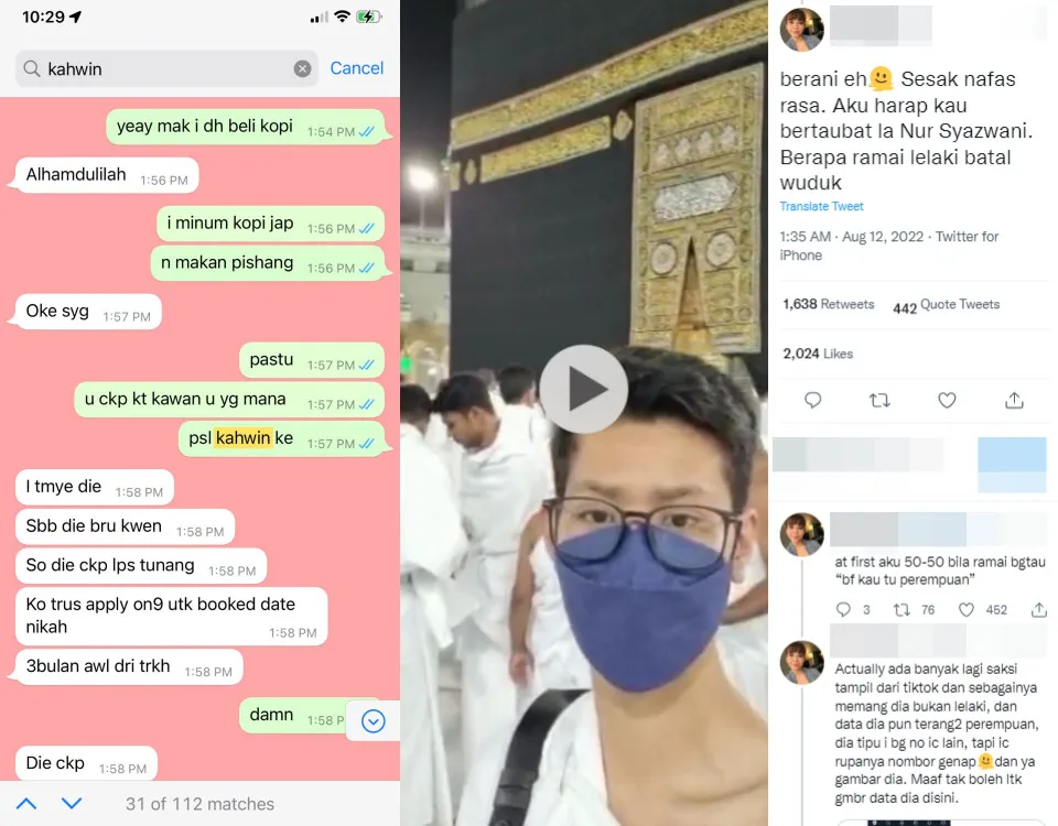This time, another local woman has landed herself in hot water after a video of her performing umrah while dressed in a male ihram clothing circulated online. For those who are curious, the shocking revelation was made by someone claiming to be her “ex-girlfriend”.