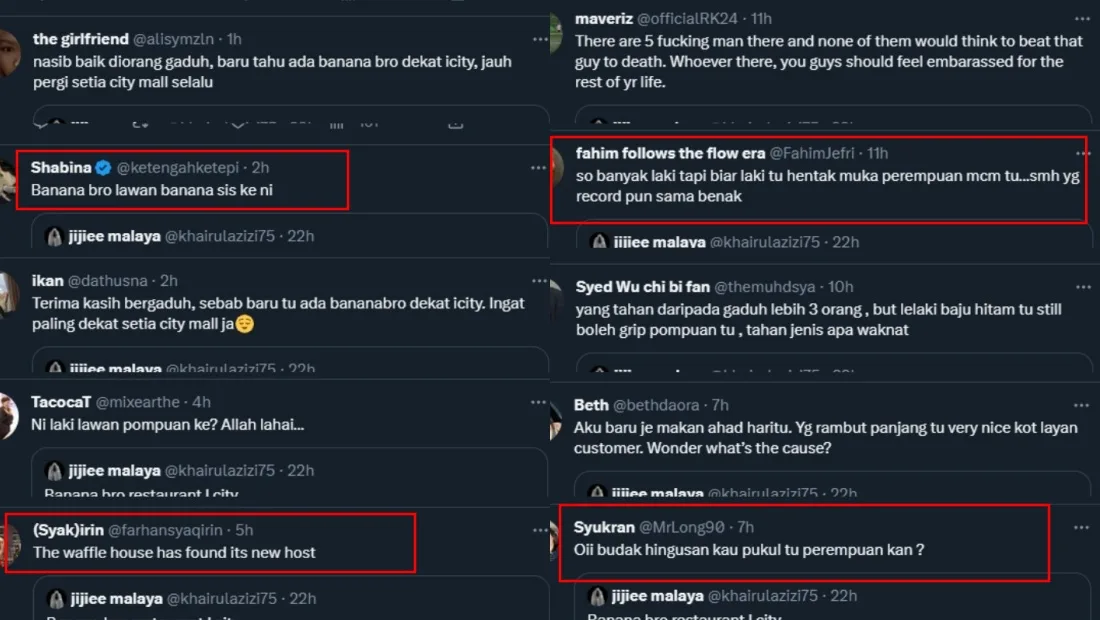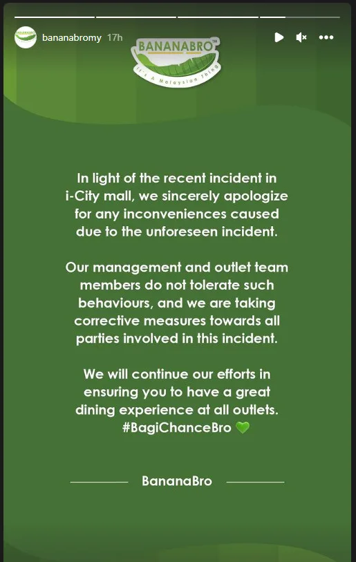 Twitter user @khairulazizi75 posted a video yesterday evening (Monday, 3rd April) showing a physical altercation that took place at the BananaBro restaurant outlet in Central i-City, Shah Alam. The fight was believed to be between two staff members; one male manager and one female manager. As seen in the video above, the two staff members in black uniforms were literally at each other’s throats while the ones in green uniforms tried to separate the two.