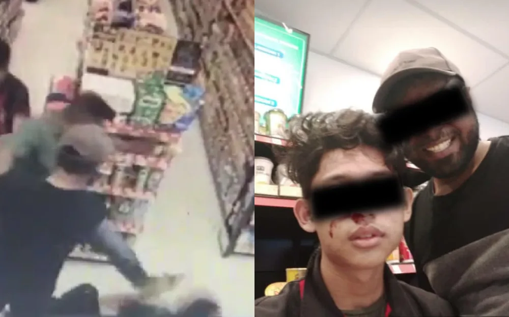 That happened to a 17-year-old while working at a 7-Eleven in Bandar Rinching, Kajang. The incident was reported by the boy’s father, Shahrul Aminshah Aziz, who also shared CCTV footage of the incident. In the footage, two drunk men had entered the convenience store while the victim and a co-worker were on shift.