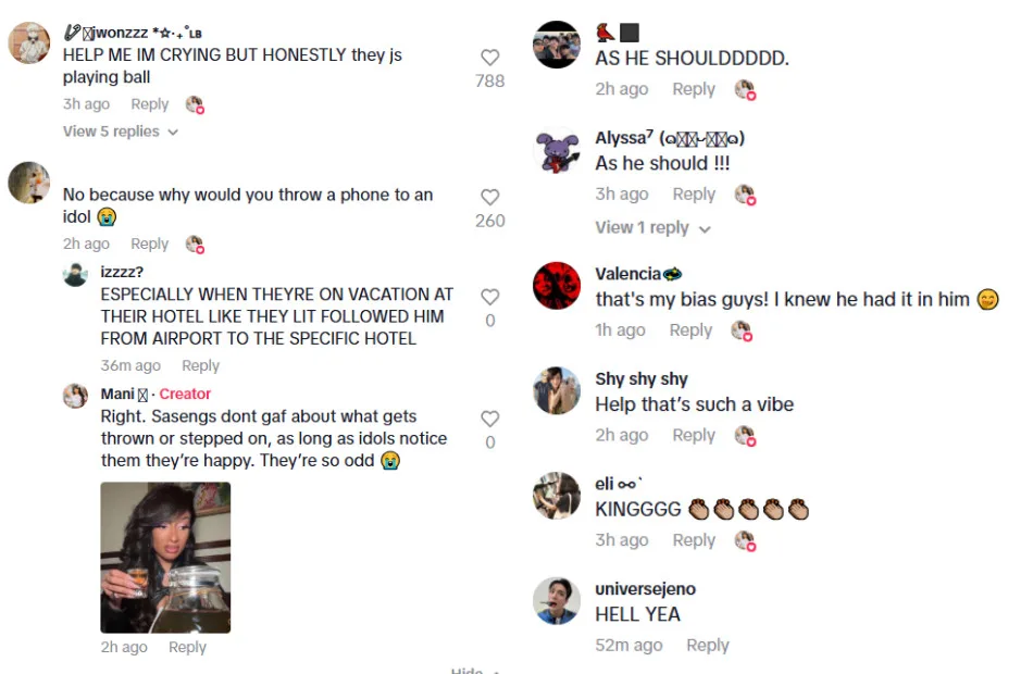 However, just as they entered, a phone was thrown inside, prompting Soobin to grab it and throw it back out. Moments later, another phone was hurled into the lift, nearly hitting him. It remains unclear whether the devices were thrown in an attempt to capture footage of the stars or simply to get their attention. The TXT leader once again picked up the device and threw it back out as his friends entered the lift.