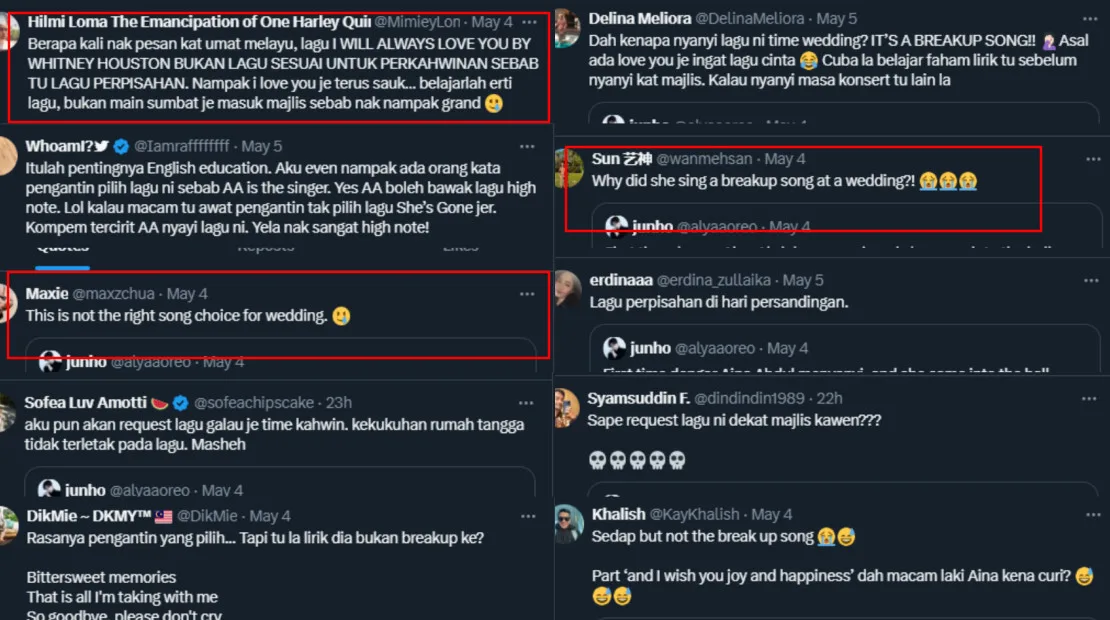 Aina Abdul hasn’t responded to the criticism online but if the newlyweds themselves are okay with the song choice then there shouldn’t be an issue, right? Do you think the song was okay or should she have chosen a different ballad for the wedding?