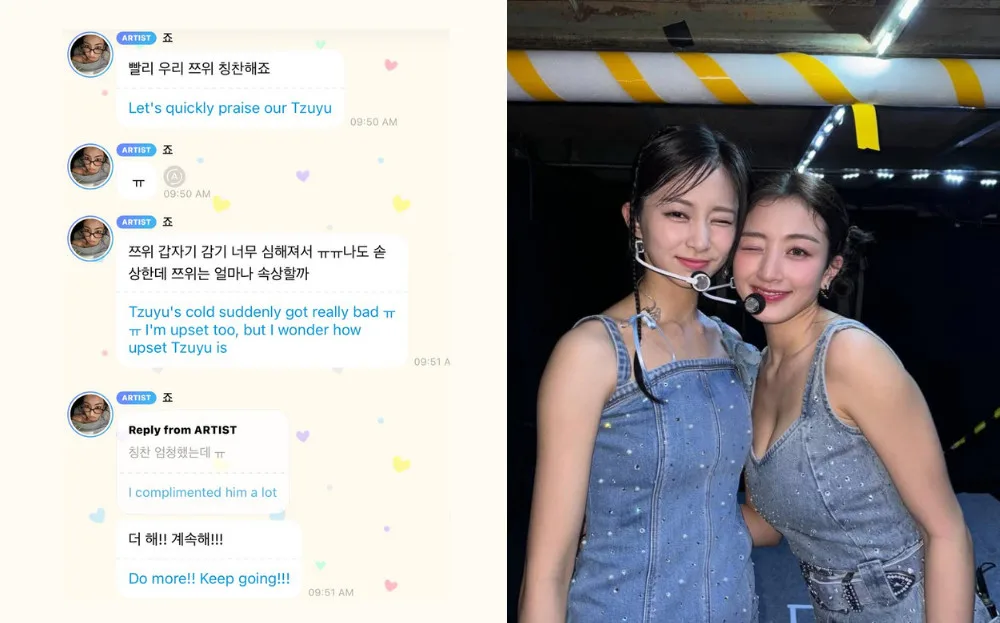 TWICE’s leader, Jihyo, also took to Bubble to offer words of encouragement to her fellow members and urge fans to show compassion. “Let’s quickly praise our Tzuyu! Tzuyu’s cold suddenly got really bad. I’m upset too, but I wonder how upset Tzuyu is,” Jihyo wrote. Her message was met with an outpouring of support from fans across the globe, who trended hashtags in solidarity with Tzuyu and the group.