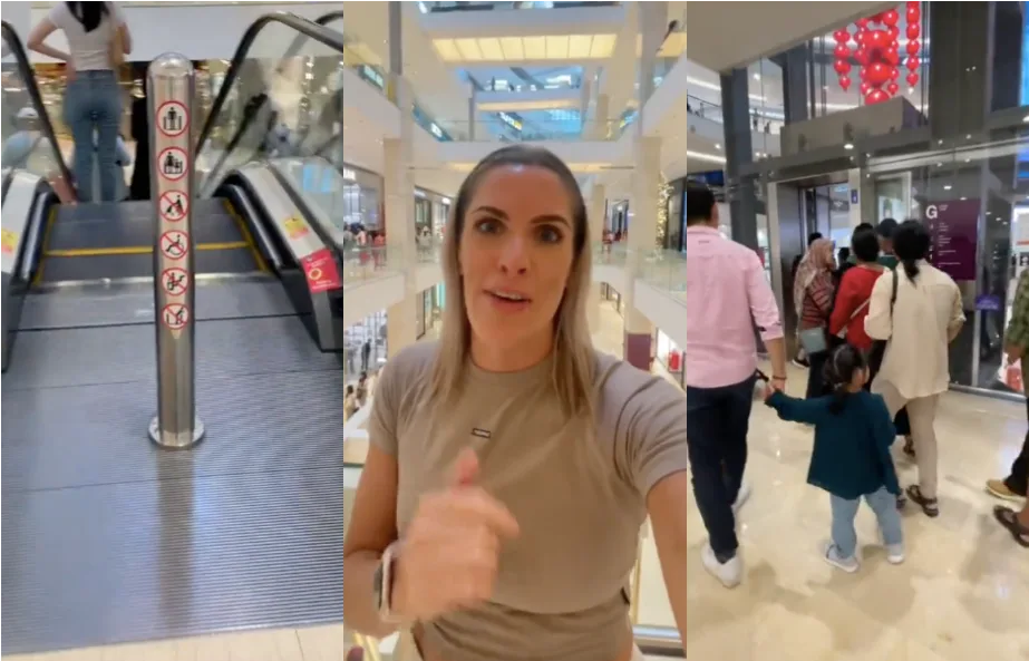 In the video, Tamira Hutchinson shared that her family decided to go shopping and came across some troubles that made them regret bringing the baby stroller. “Usually, when going up and down the escalator, I’d hold the stroller in some weird dodgy way but [in this mall] they stopped you with a pole so you can’t use the escalator with a stroller,” she said.