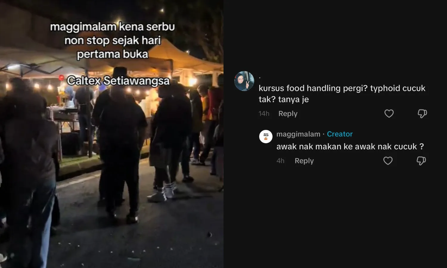Curious about the stall’s food handling knowledge, a curious TikTok user commented on one of MaggiMalam’s videos, “Did you attend a food handling course? Have you gotten a typhoid injection?“. However, the owner replied in a passive-aggressive tone, while failing to answer the simple question. The response gained angered comments from online users, with some demanding to know whether they even have the proper qualifications to sell food.