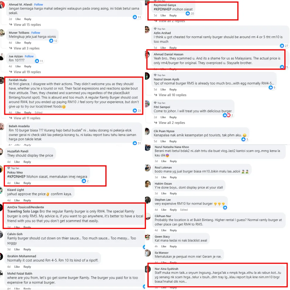 After the video went viral, Malaysian netizens were shocked that the American tourist had to pay RM10 for a regular Ramly burger which usually costs around RM4 to RM5. Many called out the sellers for scamming the poor man while others criticised them for their unfriendly attitude as shown in the video. Some even tagged the Ministry of Domestic Trade and Consumer Affairs (KPDNHEP) to investigate and intervene in this matter.