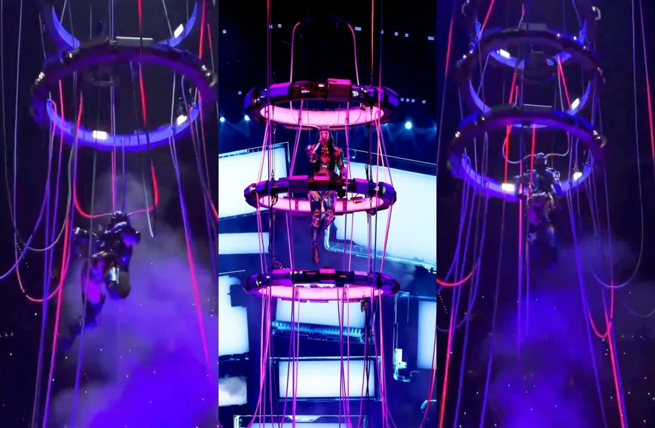 During her recent concert in Raleigh, North Carolina, a fan captured the moment Katy Perry ascended from the stage while performing “Artificial”. As she entered an elevated set, the singer, who was portraying an AI robot, appeared to suddenly jerk uncontrollably. Many claimed that the songstress had been shocked by the surrounding prop wires from the set.