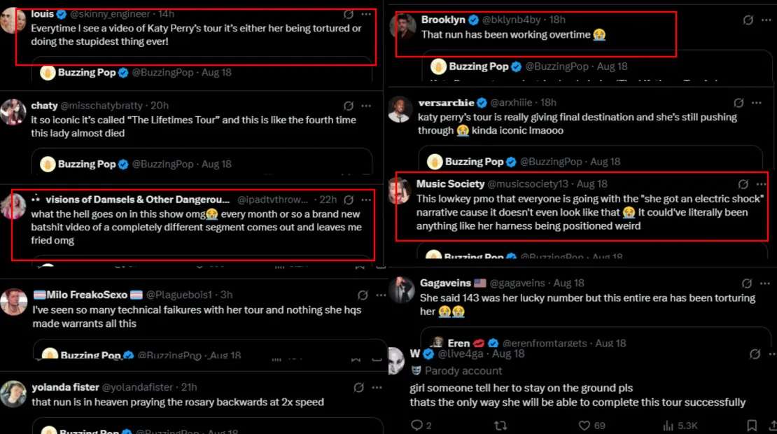 Katy Perry’s “Lifetimes Tour” has sparked criticism and concern from fans. Last month, the singer experienced a stage malfunction when the wires of an elevated butterfly prop she was riding on came loose, causing it to drop slightly. Thankfully, the pop star managed to hold on, avoiding what could have been a serious fall.