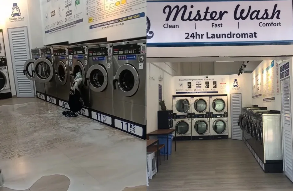A few days ago, a woman posted several videos of an incident that occurred at a Mister Wash laundromat in Singapore. The videos showed that the premise was flooded with soap water, glass shattered on the floor and a large object with wheels still spinning in one of the washing machines. According to the Facebook user, the object in question was actually a baby playpen.