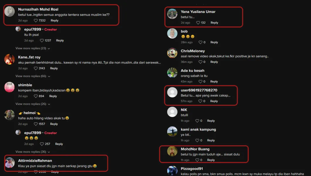 Though the original video has since been removed, another TikTok user, Epul7899, uploaded a video in response to Dina Sayang’s post, and it’s now gaining the attention of many again. In his video, Epul explained that not all Armed Forces officers are Muslims. Some of them also come from different cultural and religious backgrounds including Kadazan, Iban and Bidayuh.