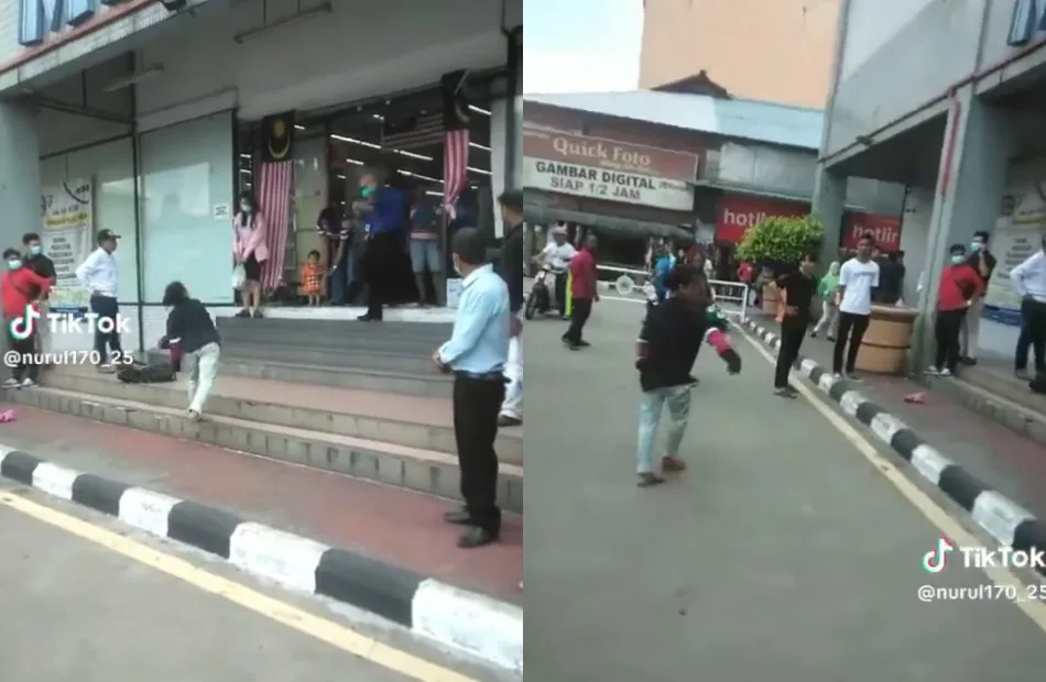 In the video posted, the woman can be seen throwing her pink slippers at the guard after he told her off. She then backed away while screaming when the officer slowly approached her. The Mydin employee then went inside while the woman continued to scream outside the supermarket.