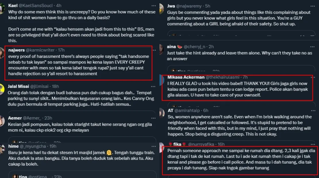 However, the man was persistent in trying to gain their trust; asking for the woman’s number and following her and her friends into the shopping centre. After noticing that the stalker was still following them, the girls quickly approached a security guard to help them lose the man. The tweet gained a lot of attention from netizens who sympathised with the victims and condemned the man for his inappropriate actions. Some even shared their own personal experiences of being stalked.
