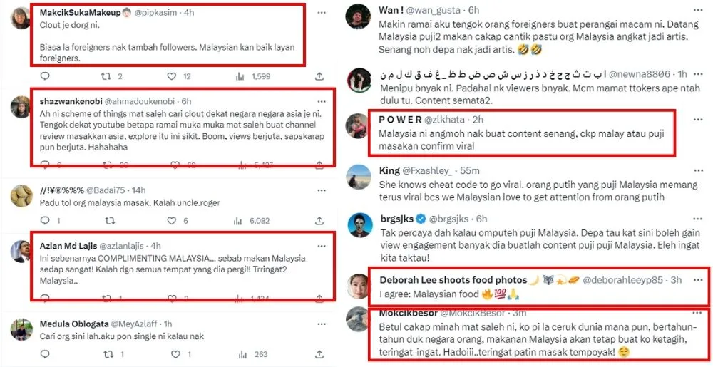 However, the video received quite the opposite attention on Twitter. While many agreed with what Lilith said about Malaysian food, they also believe the content creator is only saying those praises for clout. Many said that it’s common for foreigners, typically Caucasians, to praise Malaysia because they want their content to go viral, adding that the locals are also easily susceptible to this “tactic”.