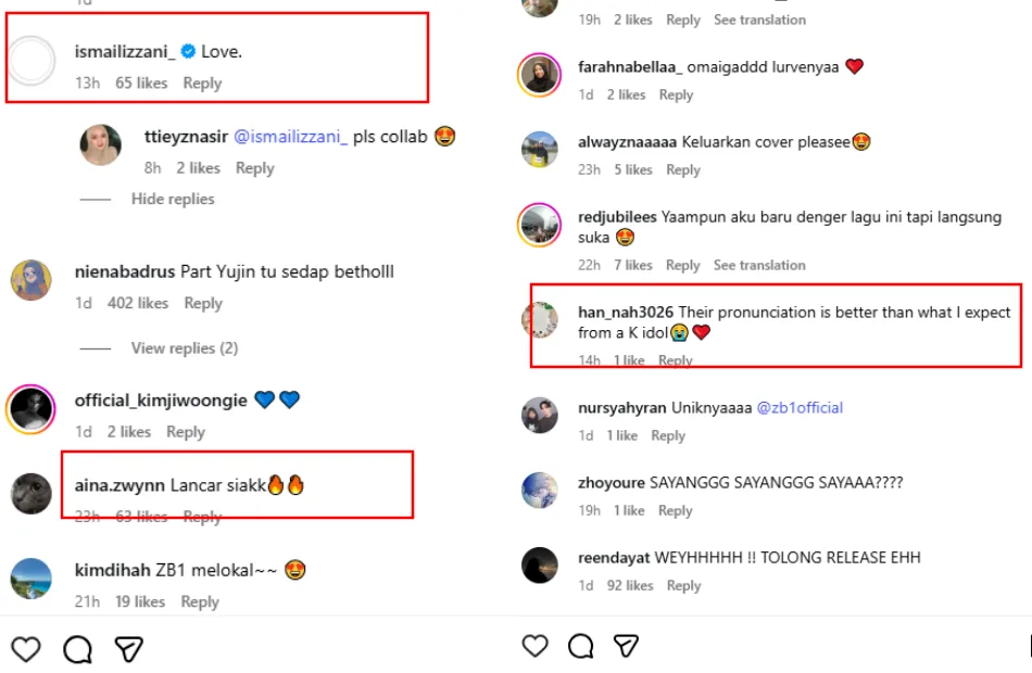 Some even commented on how local they sounded while singing the song, joking that they suspected the members of ZEROBASEONE might secretly be Malaysian. Others are hoping that more K-pop idols will cover songs by Malaysian artists whenever they hold concerts here. If you’re wondering whether Ismail Izzani is aware of the cover, it’s hard to miss. The singer commented on one of the viral videos with “Love”, showing his appreciation for the group’s choice to perform his song.