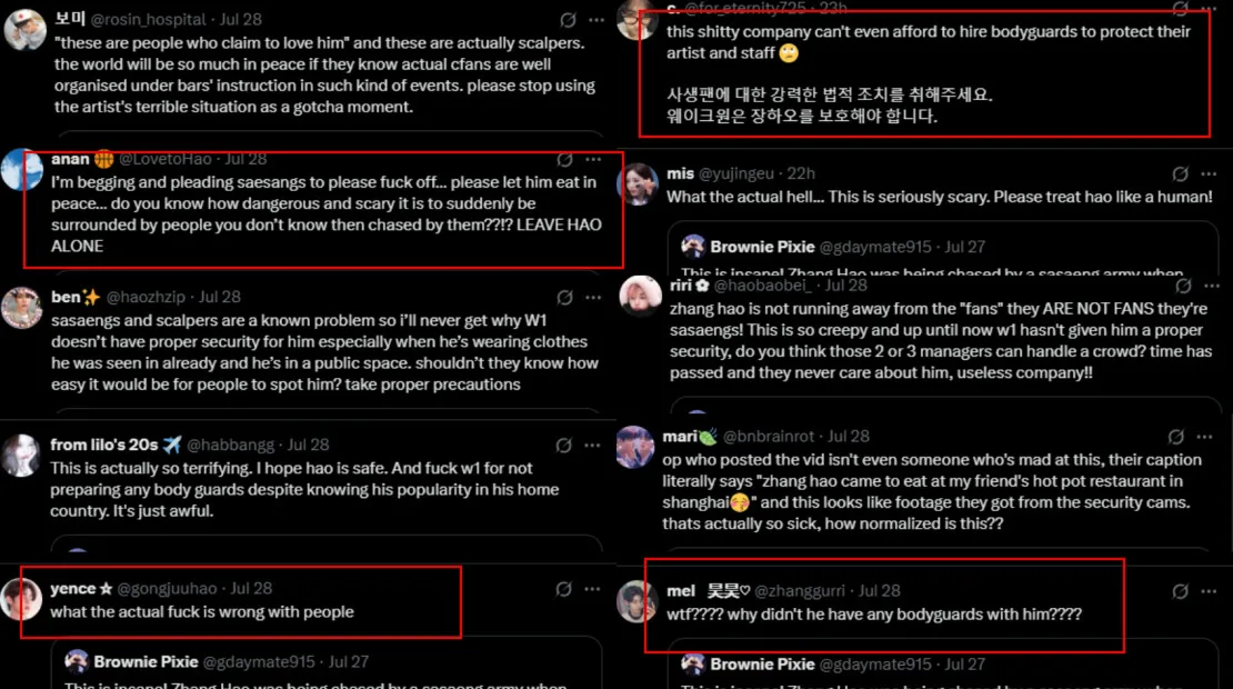 The CCTV footage quickly went viral, with ZB1 fans expressing frustration over the incident. Many criticised the sasaengs for disturbing the idol during his personal time, while others directed their frustration at the agency WakeOne for failing to provide a security team for Zhang Hao when he appeared in public. At the time of writing, WakeOne has yet to issue a statement clarifying whether the individual in the viral clip is indeed the ZB1 member.