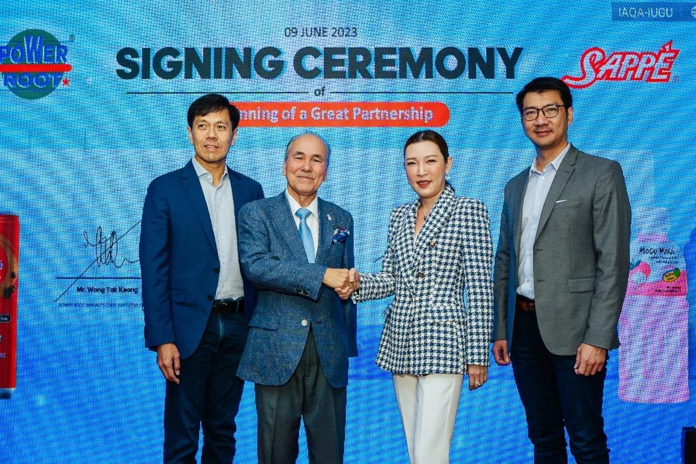 Local beverage company Power Root Berhad signed a co-investment agreement with Thailand’s food and beverage brand, Sappe Public Company Limited, to bring the world’s most beloved nata de coco drink, Mogu Mogu, into the country for the enjoyment of local consumers. The signing ceremony also witnessed Korean singing sensation, Jang Han Byul, being appointed as the ambassador of the famous drink.