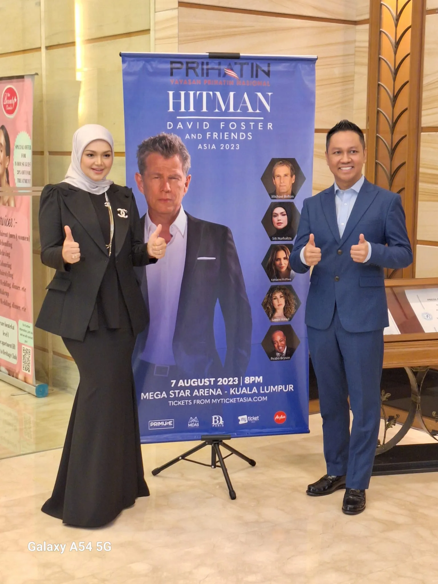 Malaysia’s favourite songstress, Dato’ Sri Siti Nurhaliza, is all set to share the stage with renowned music producer and composer, David Foster, in the “Hitman: David Foster & Friends Asia Tour 2023” concert to be held at the Mega Star Arena, Sungei Wang Plaza, on 7th August. Organised by Yayasan Prihatin Nasional, the concert will also feature international powerhouses Michael Bolton, Peabo Bryson, Loren Allred and Katharine McPhee.