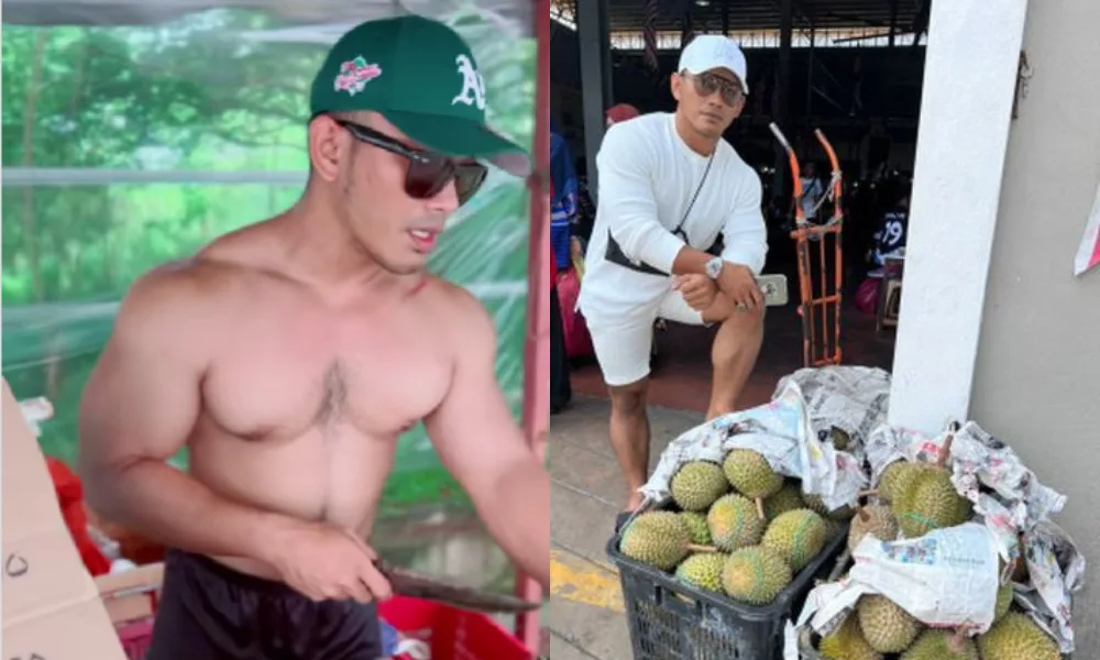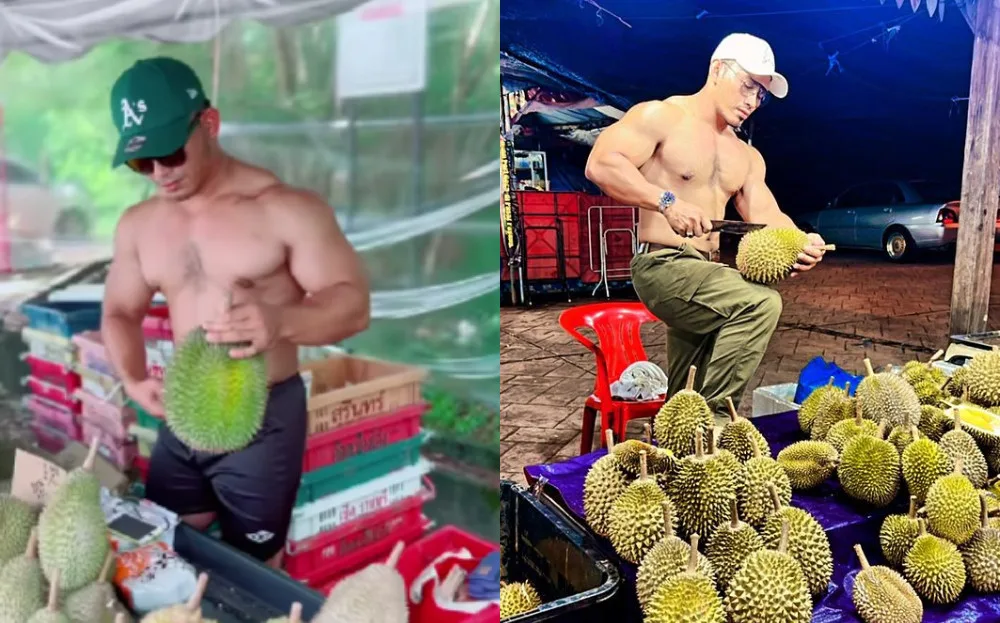 A video of another shirtless durian seller recently went viral, gaining thousands of views on social media. Ery Syarif, who also works as a fitness trainer, is based in Kuala Terengganu and says it is his first time selling durians, so he was not expecting all the attention.
