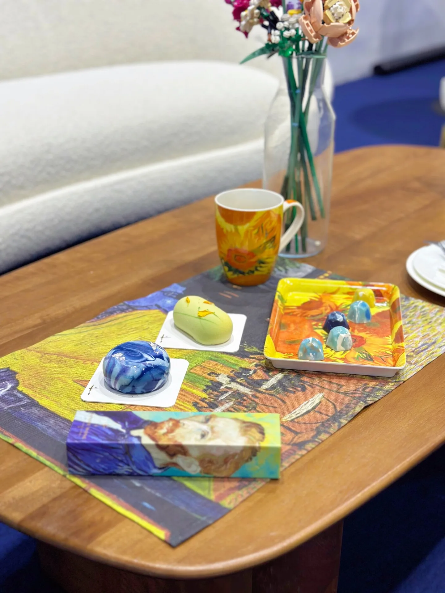 And if you thought that was beautiful, wait till you see the artisanal mini cakes. They have also been themed to Van Gogh’s paintings and beautifully embody the character of the artworks, like the sunny bright yellow ‘Vase with Fifteen sunflowers”.