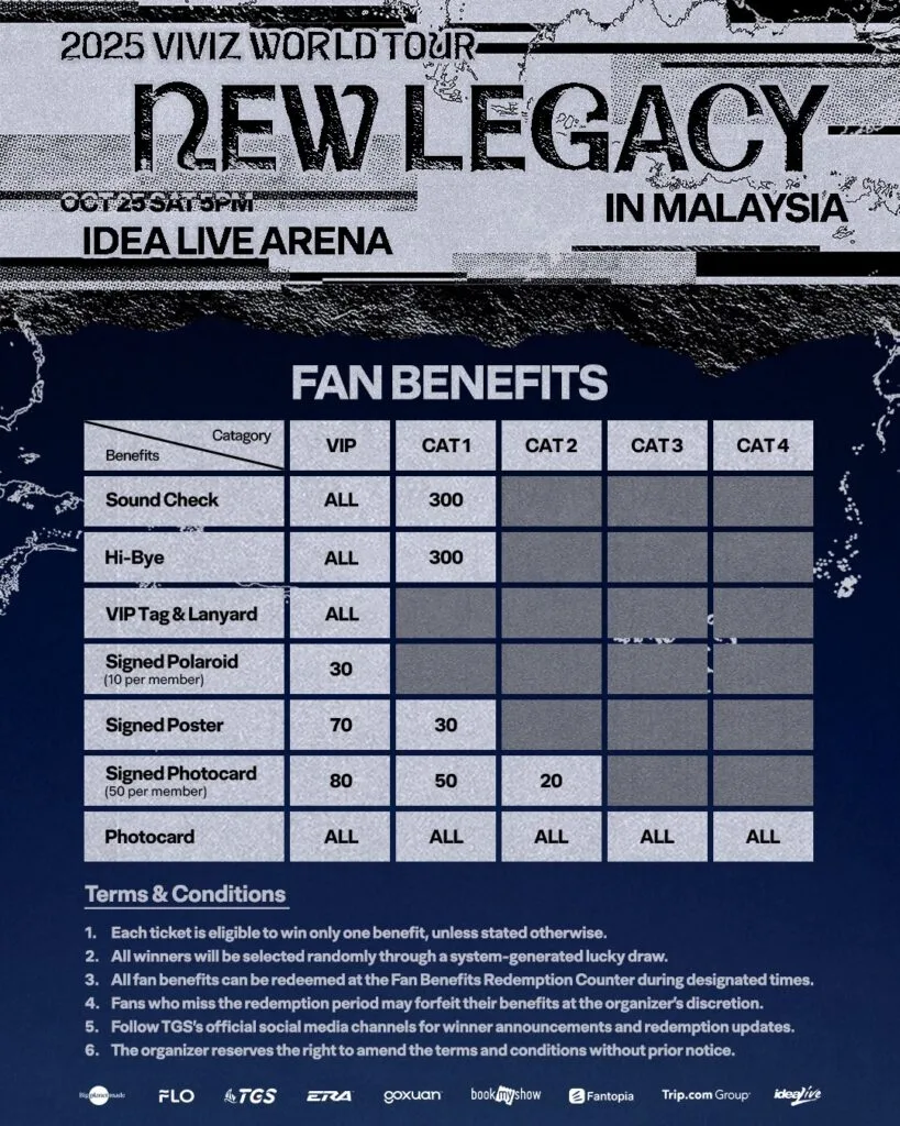 On 29th July 2025 (Tuesday), the girl group announced additional dates and stops for their “NEW LEGACY” world tour. The expanded tour schedule includes stops in North America and Asia. VIVIZ will perform in Malaysia on 25th October 2025 (Saturday). More information on the concert, including venue and ticket prices, will be announced soon. Besides Malaysia, the group will also perform in Tokyo, Hong Kong, and Taipei.