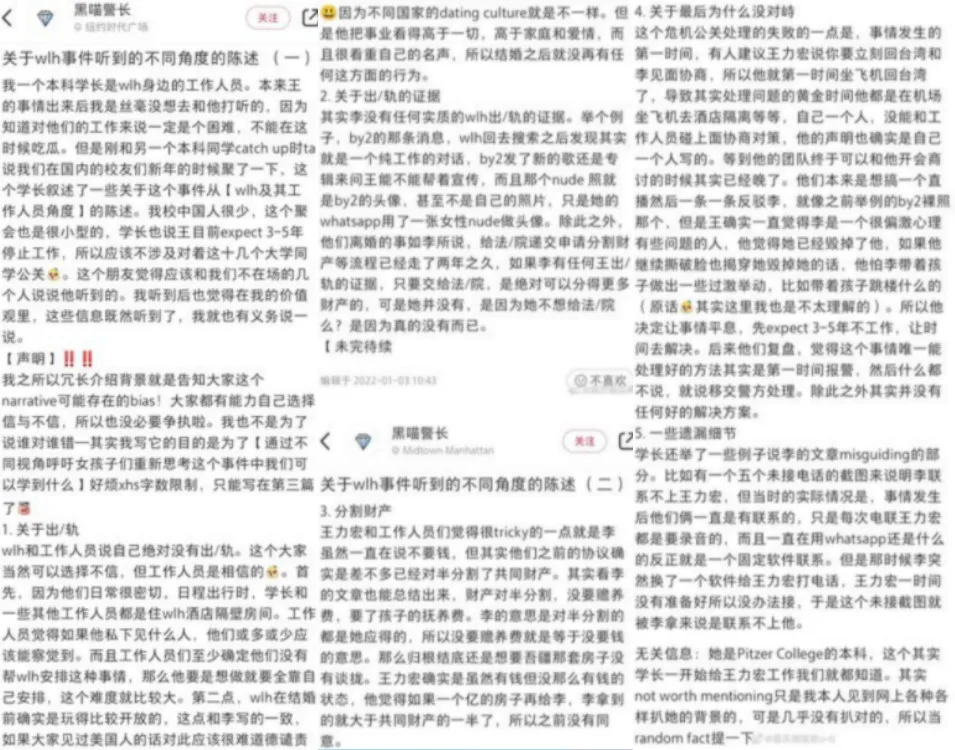 The post first appeared on Xiaohongshu (Little Red Book, 小红书) on Monday, 3rd January. It was supposedly written by a netizen claiming to be a member of Leehom’s staff. The netizen staunchly defended the once-popular singer and made several allegations against Jing Lei.