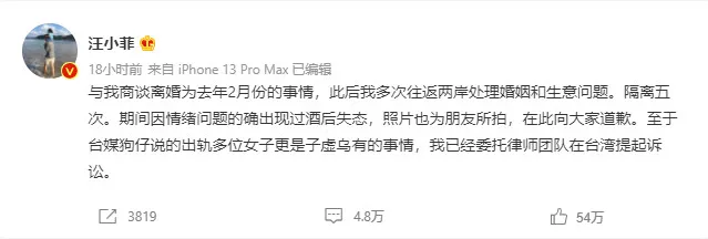 Barbie HsuBarbie Hsu divorceBarbie Hsu Wang XiaofeiBarbie Hsu Wang Xiaofei divorceWang XiaofeiWang Xiaofei WeiboWeibo徐熙媛汪小菲