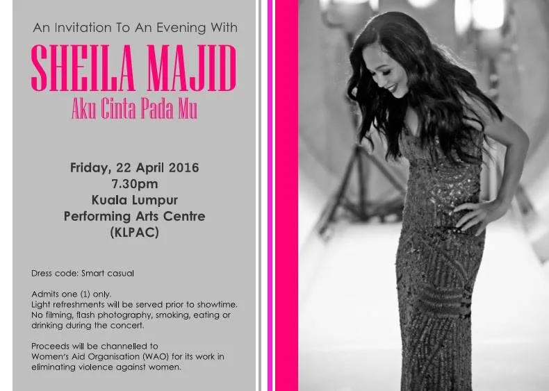 Having recently performed in Singapore and Jakarta, Sheila will be staging a charity concert in support of Women’s Aid Organisation (WAO) later this month. Set to take place at the Kuala Lumpur Performing Arts Centre, seats are available with donations from RM500 onwards.