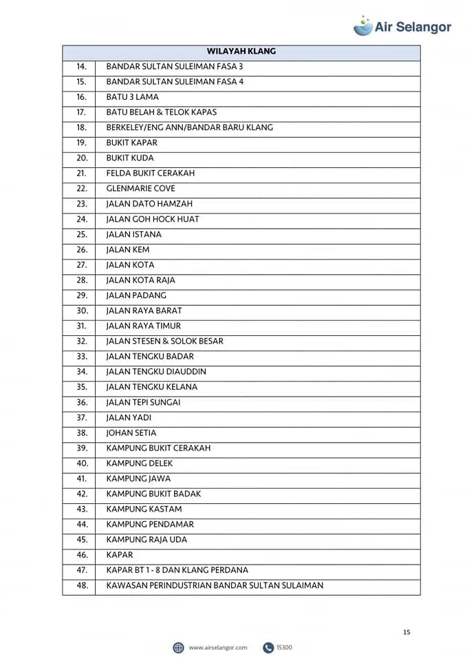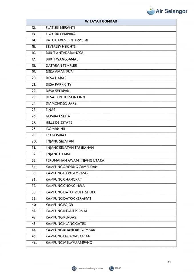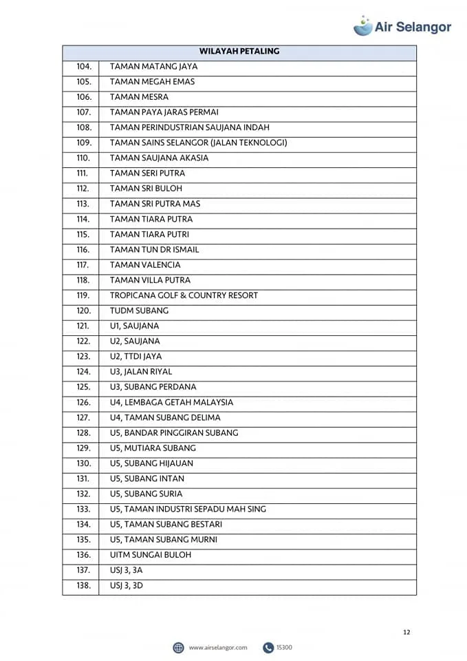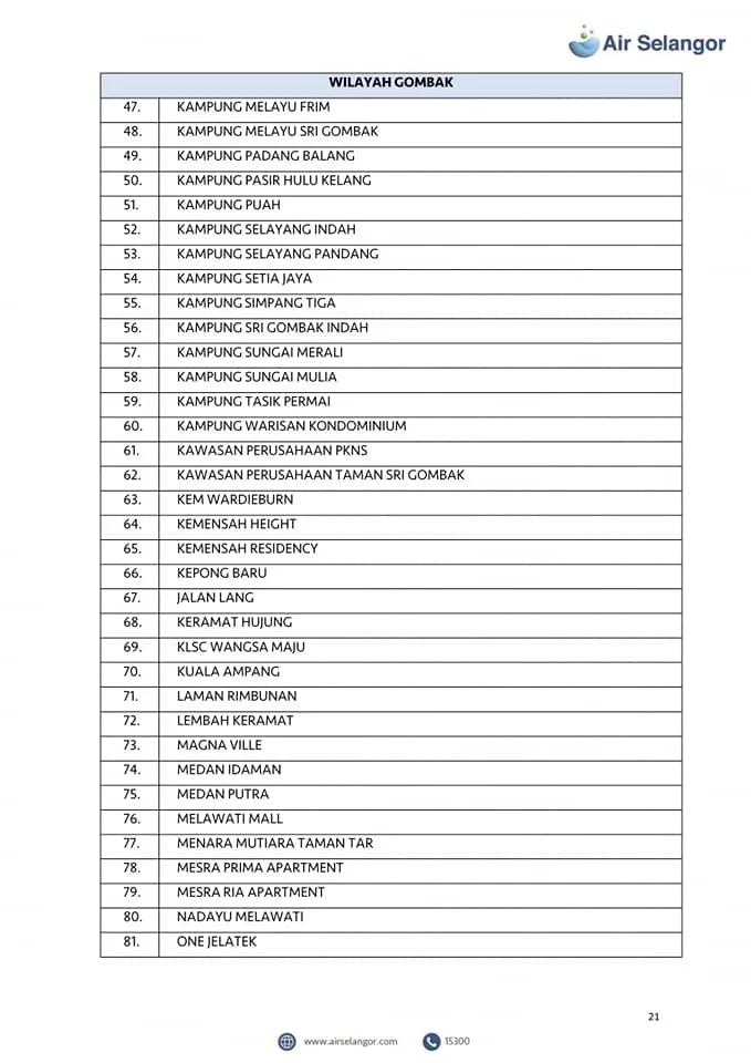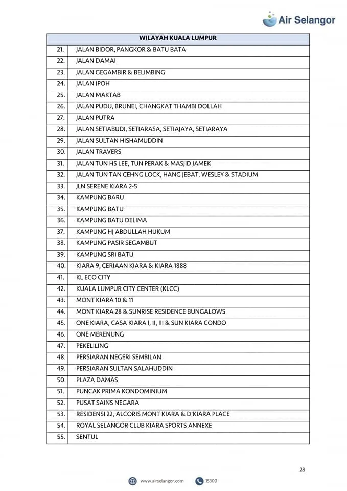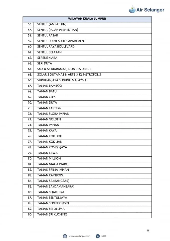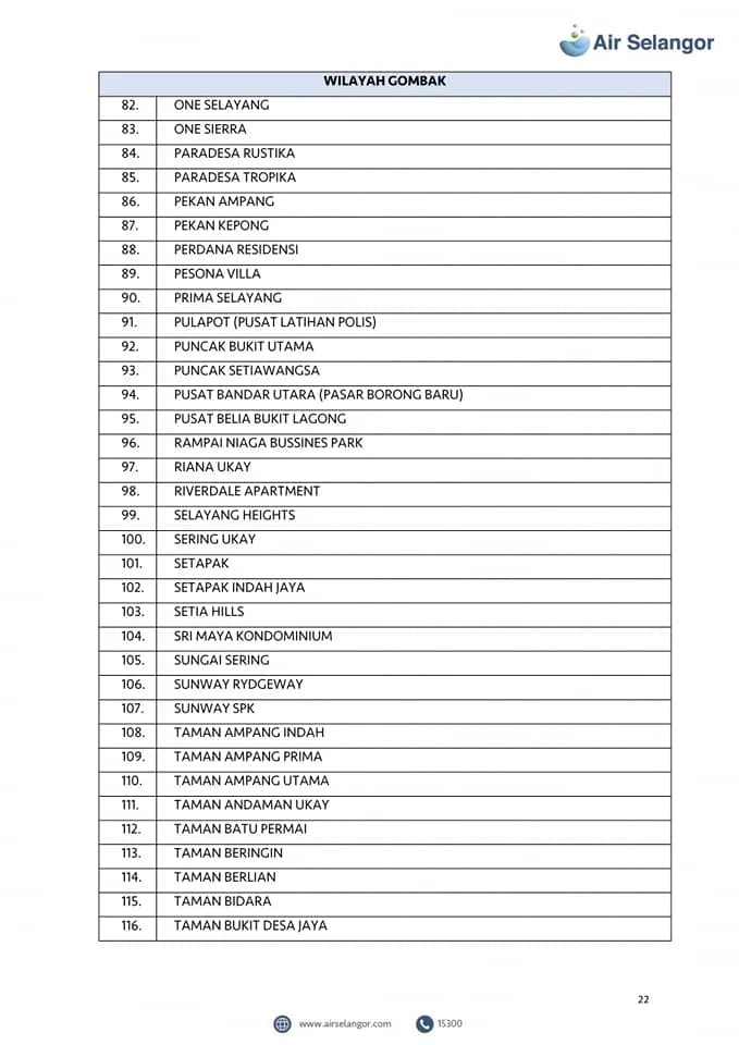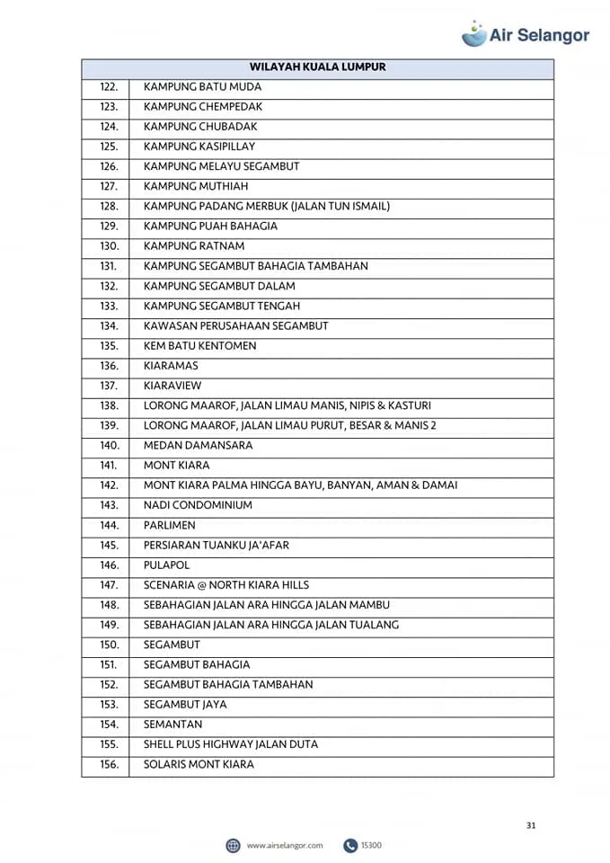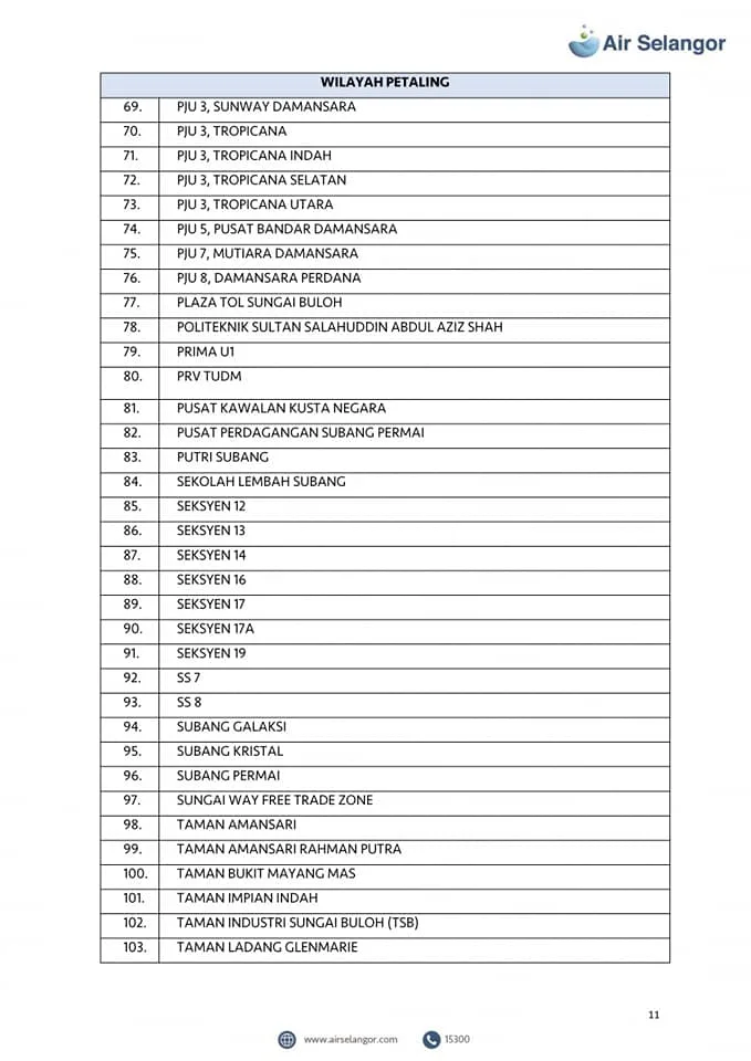 Air Selangor will mobilise 105 water tankers to the affected areas. However, priority will be given to critical premises including hospitals, dialysis centres and funeral parlours. Check out the list of the affected areas here: