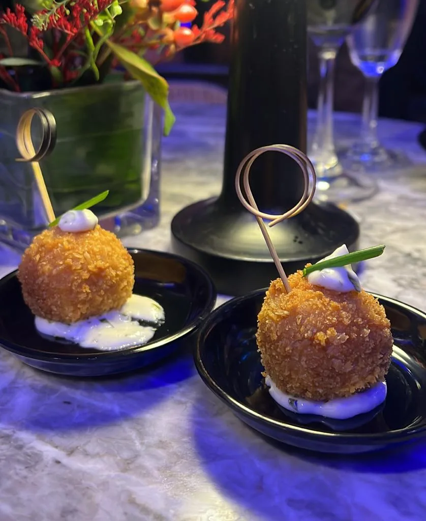 These cute golden fried balls were bursts of flavour. Cheese just oozed out with every bite. It was a perfect balance of crispiness and gooeyness – we loved it.